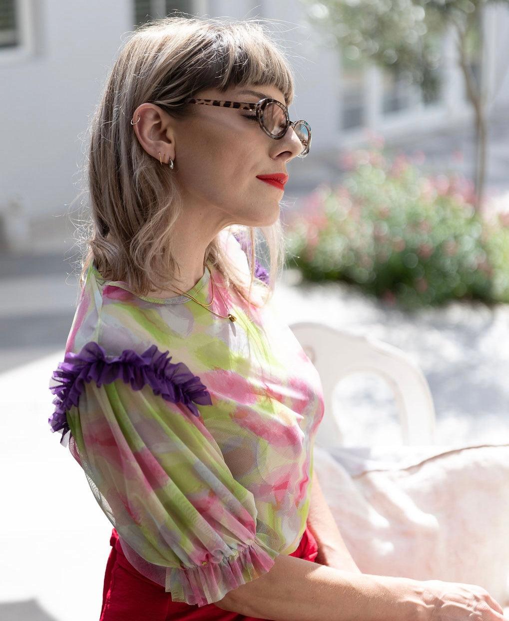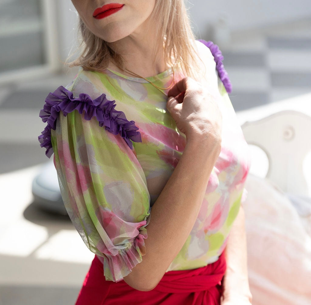 Indulge in the sheer delight of our MAIA blouse, a delicate and enchanting addition to your wardrobe. Crafted with a whisper-soft mesh fabric that caresses your skin, this blouse exudes an air of ethereal elegance. The relaxed fit and gentle drape of the fabric ensure both comfort and a flattering silhouette, while the intricate mesh detailing adds a touch of allure to any outfit. Whether paired with tailored slacks for a sophisticated office look or with a lacey bralette for a more daring evening ensemble, this blouse will elevate your style to new heights.